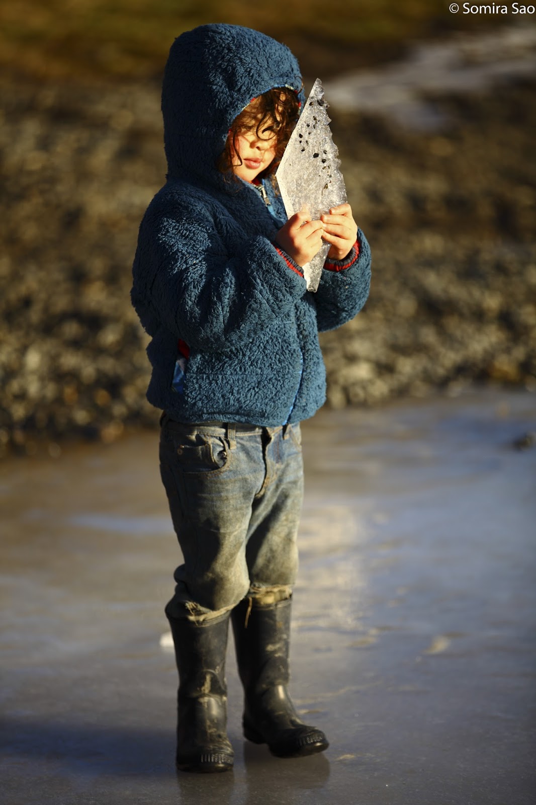 My kids at play on the shore of the Beagle Channel in winter.